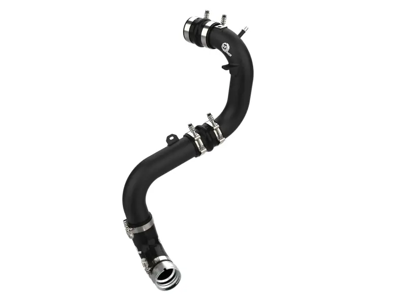 Smooth transitions in the mandrel-bent aluminum pipe decrease turbulence and minimize pressure loss, increasing horsepower and torque. This kit includes high-quality, stainless-steel, spring-loaded T-bolt clamps and heavy-duty, 5-ply, polyester reinforced silicone couplings. This charge pipe kit features factory style billet aluminum quick-connect adapter with an O-ring to ensure a leak-free fit while maintaining superior strength and durability. Finished in wrinkle black powder coating with a unique laser-etched aFe power logo for a custom look.