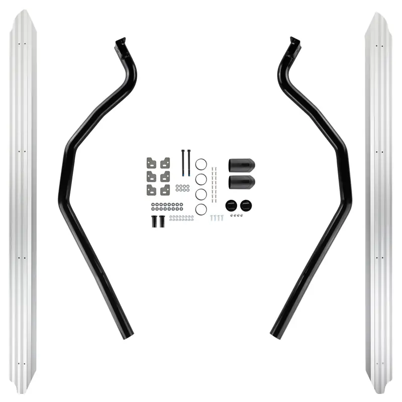 Side rail and combination steps to protect the front quarter panels and lower sills. The integrated step offers improved vehicle access. While they offer an excellent barrier against rock ledges, they are not considered a true rock slider that might be required for aggressive rock crawling.