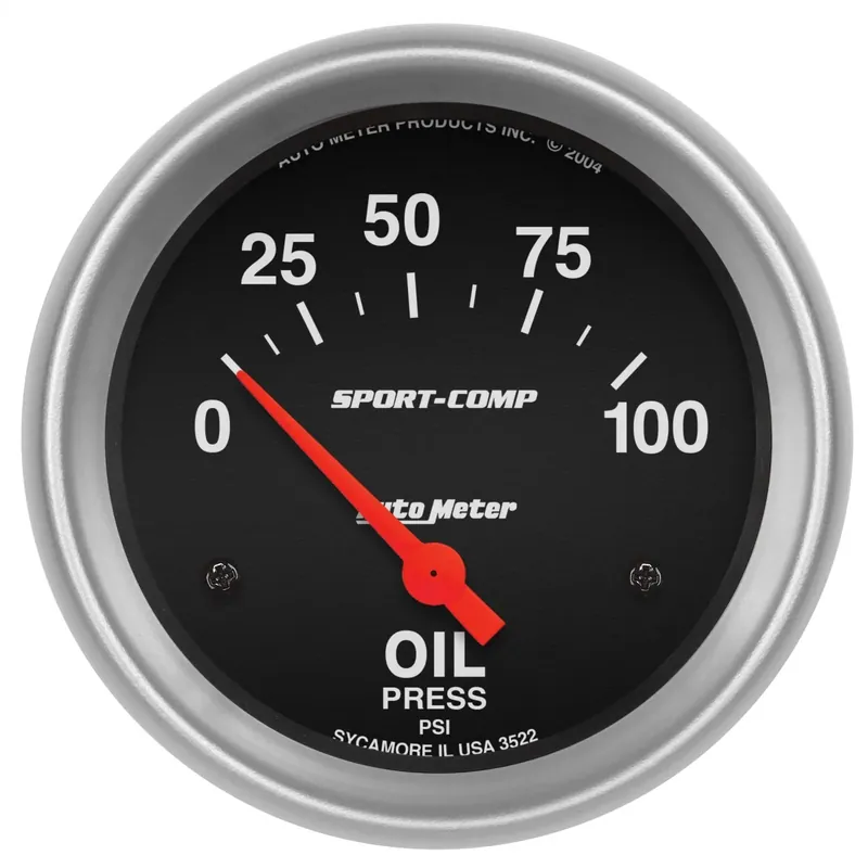Autometer 2-5/8″ Oil Pressure 0-100 PSI Air-Core Sport-Comp Latest