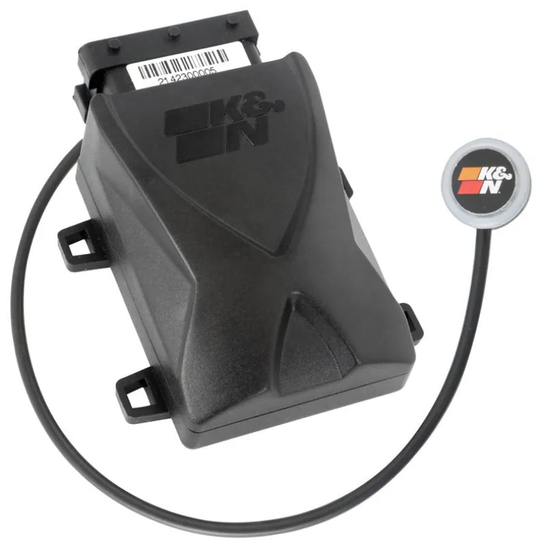 The K&N Throttle Control Module is designed to improve throttle response and acceleration, and increases pedal sensitivity without modifying factory ECU settings. The system processes input data from the gas pedal, and modifies the signal before sending it to the ECU for an adjustable level of sensitivity, creating an increase in throttle responsiveness that will make your car feel like a whole new machine.The Throttle Control Module can typically be installed in less than 30 minutes with no software required, and is adjustable on-the-go, helping you fine-tune the sensitivity of your throttle response. The kit includes the module, wiring harness, adjustable knob, hardware, and detailed instructions, and is covered under K&N’s 90-Day Limited Warranty.How It Works -The Throttle Control Module processes input data from the gas pedal, and modifies the signal before sending it to the ECU for an adjustable level of sensitivity, creating an increase in throttle responsiveness.Wire harness -The wire harness connects the Throttle Control Module’s electronic control unit to the throttle pedal on the vehicle, allowing a direct connection between your gas pedal and throttle body. The plugs and connectors are designed to attach directly to your vehicle’s stock components for easy plug-and-play installation.Control dial -The stylish aluminum control dial installs into the cab of your vehicle to give you direct control over your Throttle Control Module, allowing you to adjust how much or how little the throttle signal is adjusted.