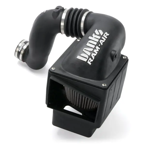 Outflows stock up to 50 Percent. Reduces exhaust gas temps (EGTs). Exclusive 4-1/2 inch bellows to accommodate engine movement. Enclosed housing keeps out hot, power-robbing engine air. Easy filter access for monitoring & cleaning. Add the optional Super-Scoop (42190) and ram cold air for more power. Testing, testing & more testing. Banks Ram-Air Intake Systems are tested and proven. They start out as CAD software prototypes and are put through flow simulations. After a hardware prototype is made, it’s tested on a flowbench. Then it’s tested on the vehicle. And finally, Banks’ density-tests the Ram-Air against stock and many competitors. Proven design. Proven performance. Banks Ram-Air Intake maximizes the flow of cool, dense air to the engine for greater power and fuel economy. Thanks to its enclosed cold-air housing, huge inlet with giant dome-shaped filter, and streamlined internal design, it flows 50% better than stock! Infact, it performs so well that it delivers greater air density to the turbo’s inlet than all competitors tested. Add on the optional Super-Scoop (42190 for standard bumper or 42191 for painted bumper), and the results are even better! Longer service life, too. An aftermarket exclusive: with 4-1/2″ bellows, Banks Ram-Air accommodates engine movement, which protects the components and extends service life. What’s more, Ram-Air is designed to not cause fault or error codes. It’s all about density. And Banks Ram-Air Intake delivers. The harder you work your truck, the more Banks Ram-Air Intake improves power and fuel economy! Key Features: Enclosed housing keeps out hot, power-robbing engine air. Reduces exhaust gas temps and sooty, black smoke. Inhales cooler outside air for more power & MPG. Extends service life and requires fewer cleanings. Giant filter maximizes high-flow filtration. Extensively tested & validated. Outflows stock up to 50%. 5-year Limited Warranty. DRY Air Filter Element. Exclusive 5 inch bellows