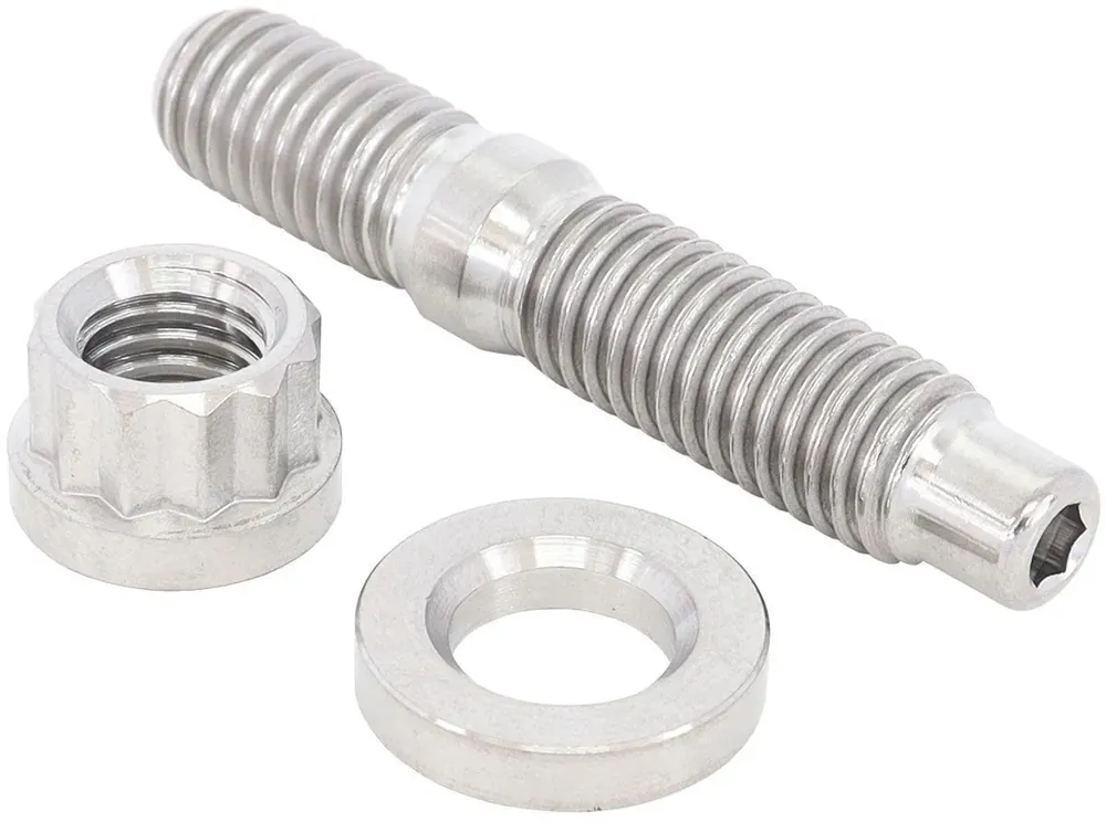 Aeroflow Performance titanium studs are 45% lighter and stronger then your regular steel stud and nut combo you find at your local bolt shop. The high strength and super lightweight Ti 6Al-4V grade (Grade 5) studs are the perfect replacement for turbo manifolds, exhaust headers or intakes. The use of factory OEM bolts and studs they can result in stripped or broken bolts and inadequate clamping force, resulting in leaks. Aeroflow Performance titanium stud and nut combo incorporates a hex key tip that allows them to be easily installed using an Allen wrench, Titanium 12-point nuts and washers are included.