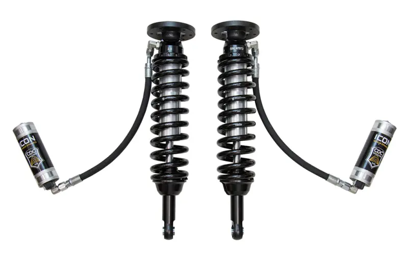 - The ICON Vehicle Dynamics V.S. Series 2.5” remote reservoir coilover shocks w/ CDCV are an incredible upgrade for the front end of the 2009-2013 Ford F150 2WD truck. ICON’s Vehicle-specific valving provides a sport tuned feel on and off-road while offering 1.75-2.63” of lift height adjustability for use of larger, more aggressive wheel and tire combinations. ICON’s larger 2.5” shock body and increased piston area over stock components provides improved damping ability and outstanding ride characteristics across varying types of terrain. Remote reservoirs ensure optimum performance by increasing the duration of consistent damping regardless of situation, keeping the shocks at a cooler operating temperature during heavy use. The ICON CDC Valve upgrade is included for those desiring an easy way to tune the ride externally with 10 settings of adjustment from soft to hard. When paired with ICON rear 2.0 Aluminum Series or 2.5 Series shocks, vehicle control will be balanced front to rear resulting in the best overall driving experience for your Ford F150 2WD.