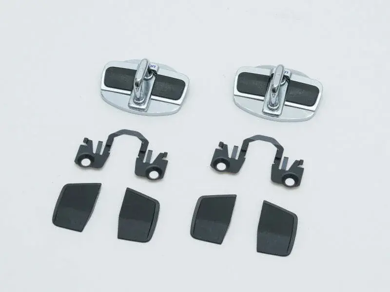 By using a spacer to close the gap between the door catch and the striker and suppressing twisting and distortion of the door opening, the vehicle response delay during steering operations is reduced and quick response is achieved. Material: Steel, resin (nylon) Set for left and right doors