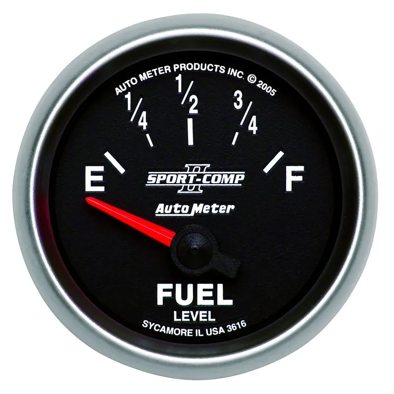One of the most necessary gauges in a dashboard, AutoMeter makes it easy by offering a variety of different fuel level gauges to match the resistance range of your existing fuel sending unit. Our patented air core meter movement receives extra dampening to help combat the effects fuel slosh in non-baffled tanks. Dont get stranded down the road or at the track.