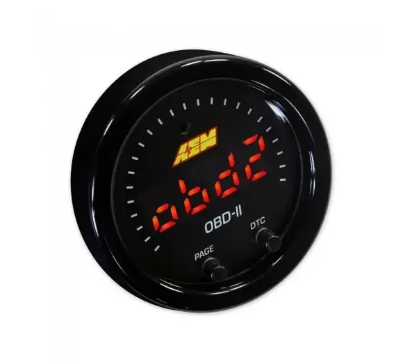 AEM’s X-Series OBDII gauge (PN 30-0311) puts multiple channels of data at your fingertips by reading the CAN bus stream of your vehicle’s OBD port and transmitting those channels to the gauge display. It reads Diagnostic Trouble Codes (DTCs) and gives you the ability to clear codes. Wiring is as simple as connecting the gauge to your vehicle’s OBDII port using the supplied connector! Because the X-Series OBDII gauge reads OBDII parameters transmitted through a vehicle’s CAN datastream, it will only work on 2008+ model year vehicles.