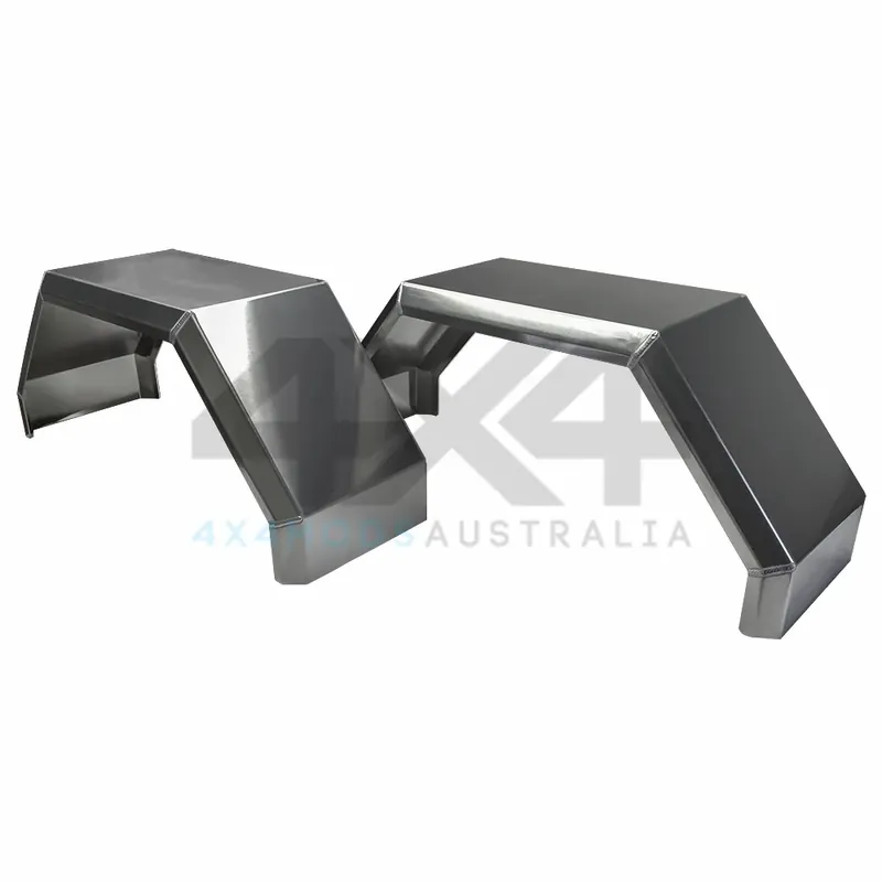 PSR’s Universal Alloy Tray Guard is designed to be a quality product that can be adapted to your custom needs. Made from 3mm alloy and allowing clearance for tyres up to 35″, this is a simple solution for those who want a clean custom looking guard but don’t have access to the equipment required to manufacture the product. The guards are supplied raw, ready to be modified to your custom requirements (mounting holes, mud flaps, painting etc.). They can also be used for dual cab applications by cutting down the front of the guard to clear the body. Dimensions are shown in picture. Different sizing options available upon request if you are looking for something to suit a larger tyre size or to hug a smaller diameter.