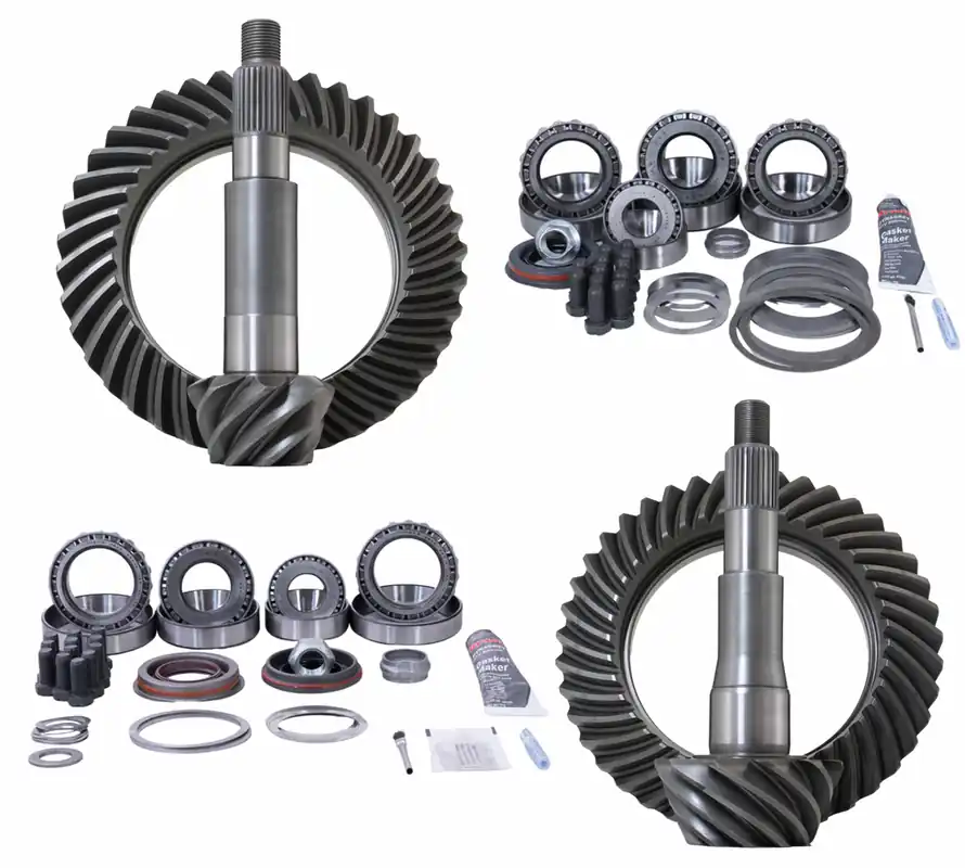 Gear Packages from Revolution Gear and Axle include Front and Rear Ring and Pinion Gear Sets and Master Install Bearing Kits.