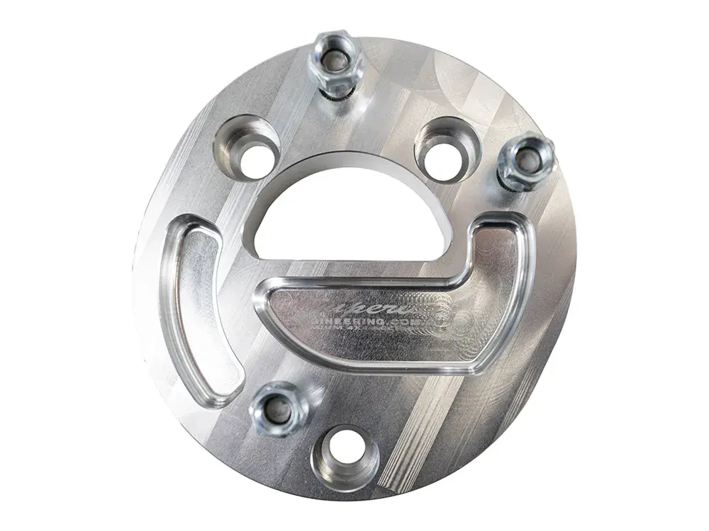 The Superior Rear Door Wheel Relocation Spacer seamlessly integrates with the OEM wheel mount on your Toyota LandCruiser 76 Series. The machined alloy finish complements the vehicle’s aesthetics, giving it a rugged yet refined look. It fits snugly onto the rear door, providing a secure and stable mounting point for your extra-large tire.