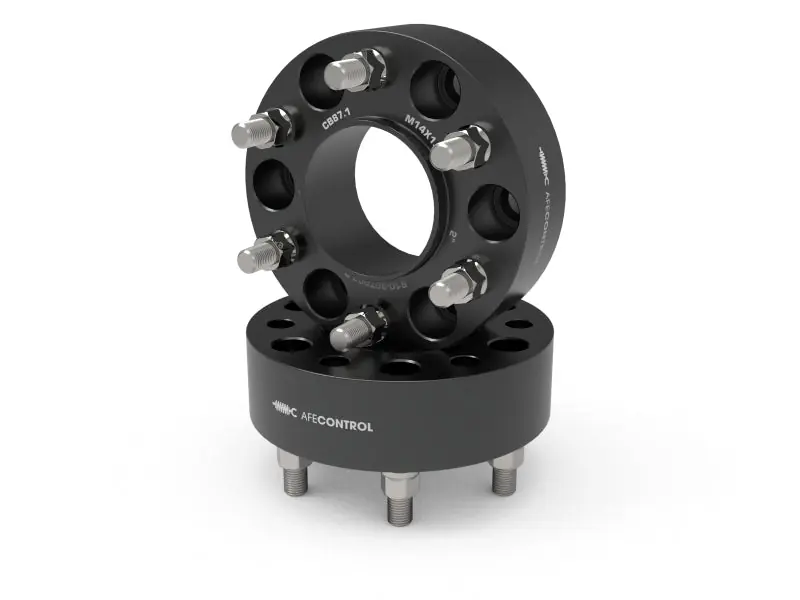 aFe CONTROL forged wheel spacers are a great way to improve the aesthetics, functionality, and wheel fitment of your vehicle. By effectively lowering the offset of your factory or aftermarket wheels, our spacers allow you to dial in a more aggressive fitment and provide clearance for other components such as brakes and suspension. The resulting increase in track width also improves handling and stability. All our spacers are designed in-house and machined to strict tolerances to ensure a perfect fit and long-lasting durability. Our hub-centric spacer design ensures the wheels are centered with the hub, allowing for wheel loads to be transferred to the hub for a stronger platform and eliminating any chance of vibration. Using 6061 aluminum heat treated forged blanks, our spacers are CNC machined to strict tolerances resulting in superior strength and precision.