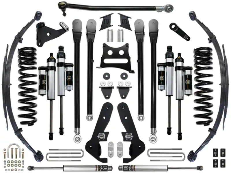 - The Stage 4 system sees the inclusion of the ICON Vehicle Dynamics Ford Super Duty 4-Link kit, which further improves performance by eliminating suspension bind commonly experienced with factory radius arms during articulation. This freeing up of the front end and the ability of the 4-Link Kit to maintain positive caster through the range of travel equates to an unparalleled ride quality in all conditions. With the endless hours ICON has spent testing and tuning our suspension components and shocks as a complete package, you can rest assured knowing that you have the best suspension solution on the market.