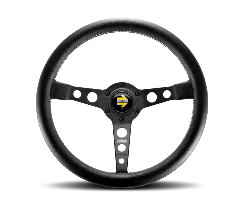 Must Have Momo Prototipo Steering Wheel 350 mm – Black Leather/Wht Stitch/Black Spokes
