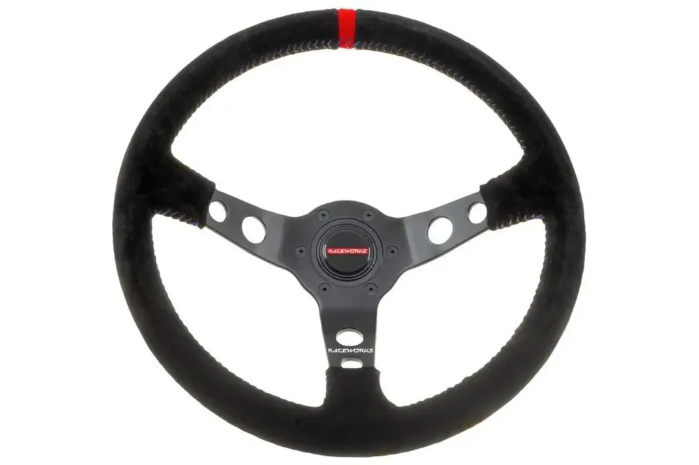 Raceworks Suede Dished Steering Wheel – Black/Black Stitching Warranty Included
