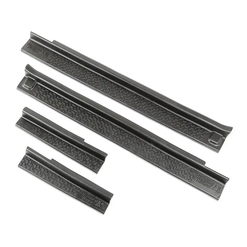 Your lower door sills can easily be scuffed by daily entry and exit from your Jeep. Designed to prevent the wear and tear, common to Jeep door sill areas, or cover up existing damage. Rugged Ridge created these All Terrain entry guards to prevent unsightly scuffs and scratches. The entry guards are constructed of tough thermoplastic and install in minutes with strong automotive-grade adhesive foam tape. Patent No. D627,285