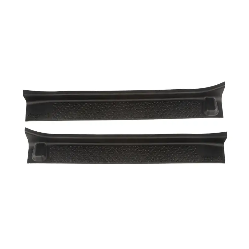 Rugged Ridge created these All Terrain Door Entry Guards to prevent the unsightly scuffs and scratches that happen just by climbing in and out of your Jeep. Defending those unprotected door sills couldn’t be any easier. When you install these Door Entry Guards, you’ll be preserving your precious paint and adding a cool accent at the same time. Constructed of a super-tough thermoplastic, each guard features an inlaid all-terrain tread pattern so they look just as great as they work- whether the doors are on or off.And installation is a breeze with the provided automotive-grade adhesive foam tape. Sets are available for both 2 and 4-Door JL models. Patent No. D627,285