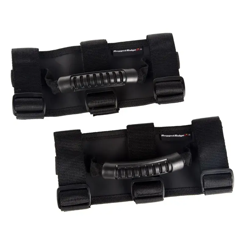 Put easy to use Grab Handles wherever you need them. Constructed of tough nylon webbing with either a molded sure-grip handle (Ultimate), soft foam handle (Deluxe) or plain Nylon webbing (Sport). The Ultimate Grab Handles are available in several hot colors to accent the Jeeps Interior – Red, Black, Green or Pink . Deluxe and Sport models fit all Jeep roll bars and 3 inch roll cages with padding. Ultimate Grab Handles will fit 2 inch or 3 inch padded or un-padded roll bars. All designs are packed in pairs.