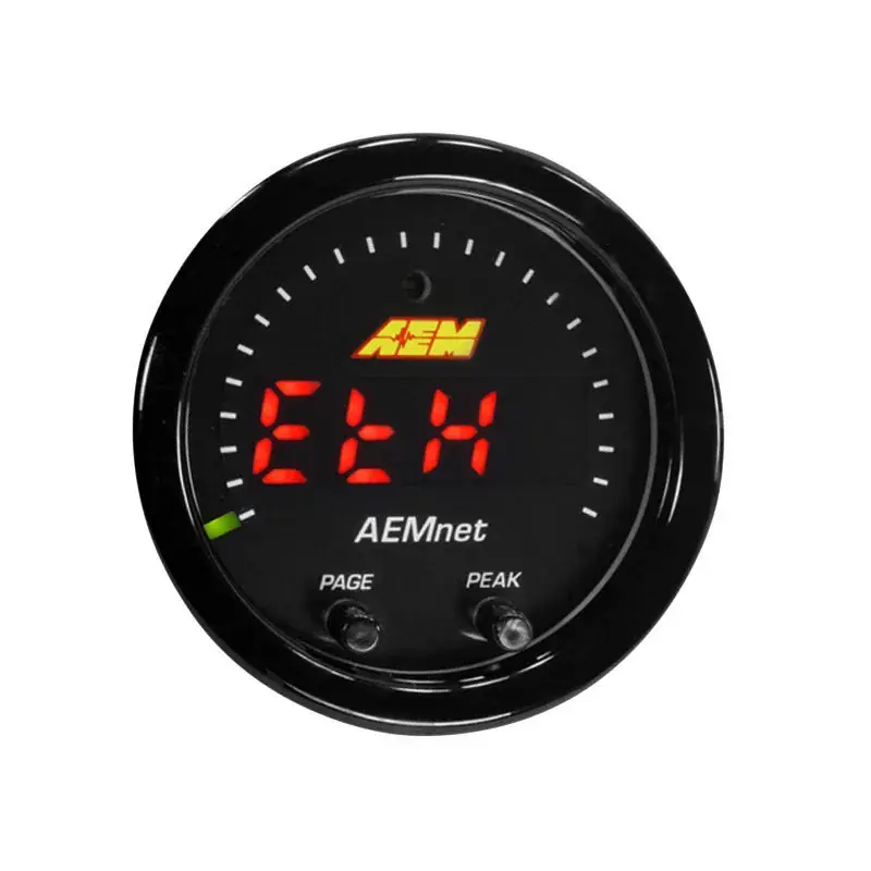 The AEMnet CAN bus gauge connects to AEMnet-equipped devices through a 4-pin DTM connector and displays data in either US or Metric units. View multiple data channels from an Infinity ECU, Series 2 or EMS-4 standalone, view AFR or Lambda from X-Series Wideband Controllers or 4-Channel Wideband Controllers, or view vehicle speed and acceleration from a Vehicle Dynamics Module (see available Channels List). Users can program which available channels they want to see on the display, choose between displaying Lambda or AFR and clear peak values for channels by using the buttons on the faceplate.