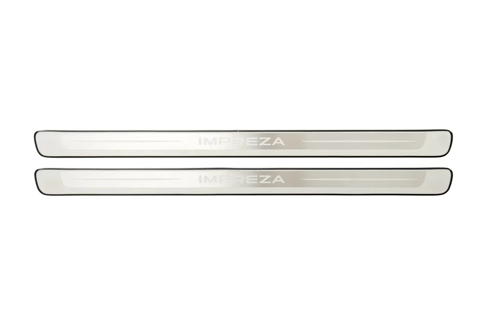 Authentic Subaru OEM metal etched side sill plates for your Impreza.
